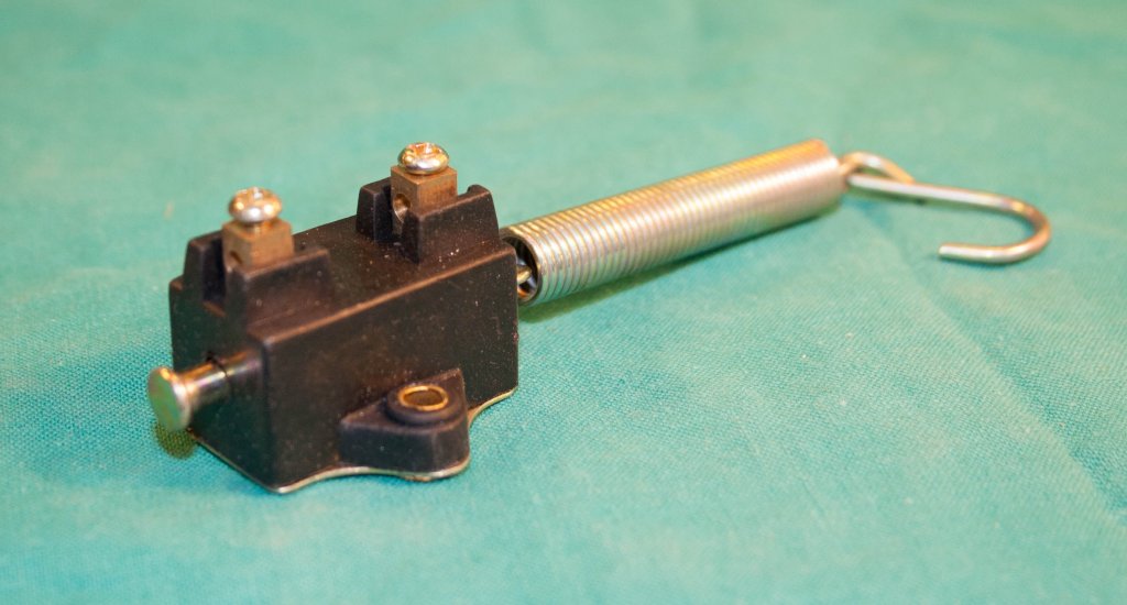 Bromsljuskontakt, universalmodell. Skruvhålens centrum/centrum-avstånd är 24mm. Kontaktens totallängd med vilande fjäder är 130mm.