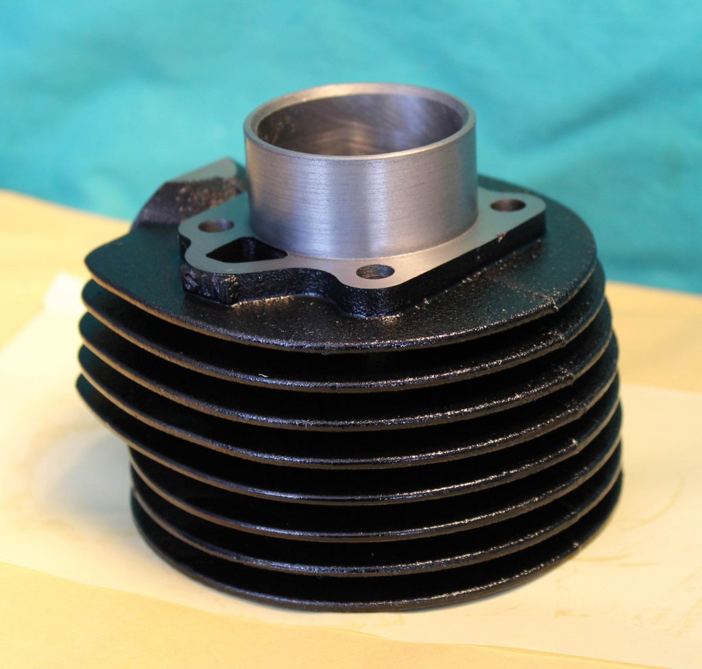 HUSQVARNAs originalcylindrar var tillverkade av lättmetall, emedan denna cylinder är tillverkad av gjutjärn.