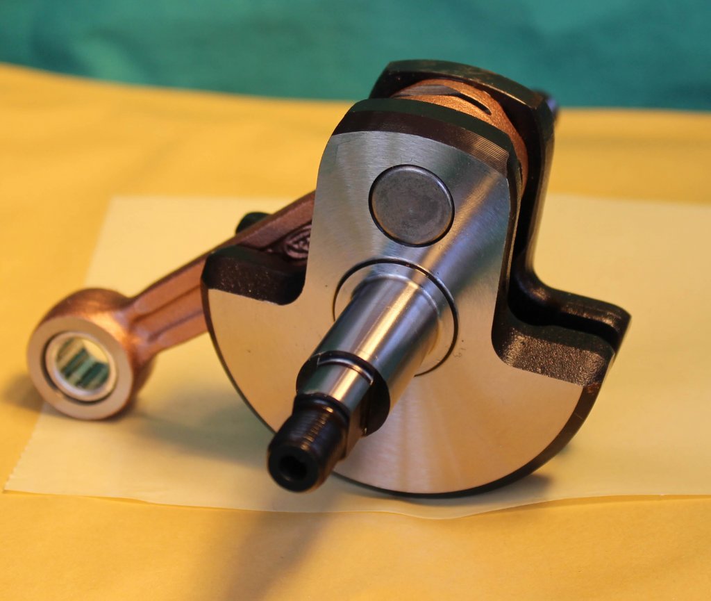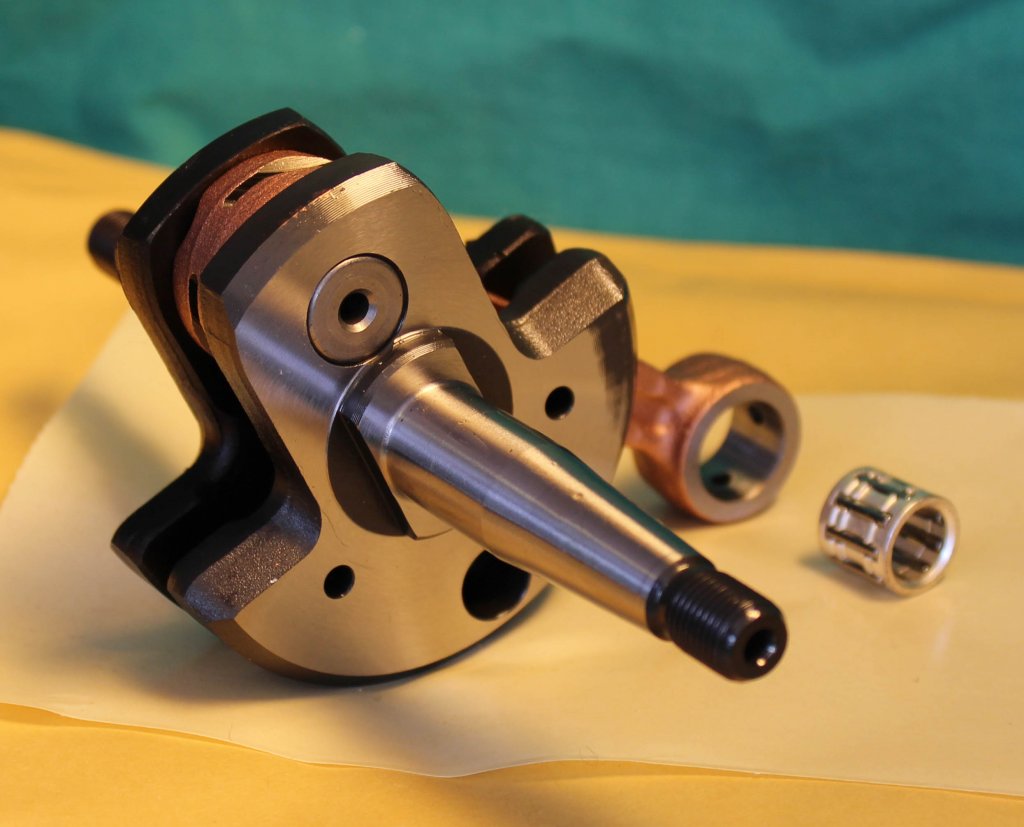 Vevaxel för HUSQVARNA ROULETTE av det första utförandet, med slidmatning och förgasaren monterad på motorblocket.