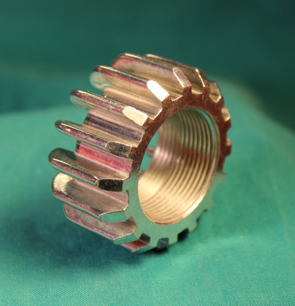Mutter med dubbelgänga, för det speciella avgasröret med gänga, som sitter på HUSQVARNA CORNETTE 4022 m.fl.