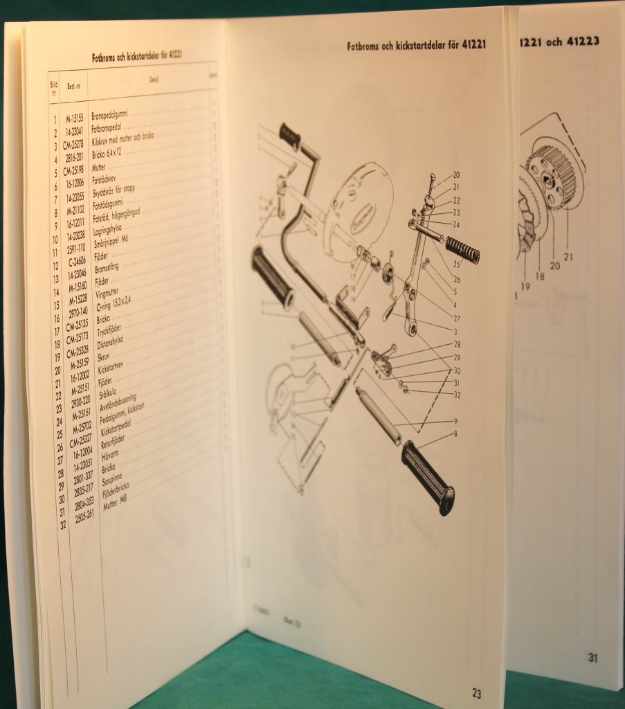 Reservdelskatalog över HUSQVARNA mopeder modell 41221 och 41223.