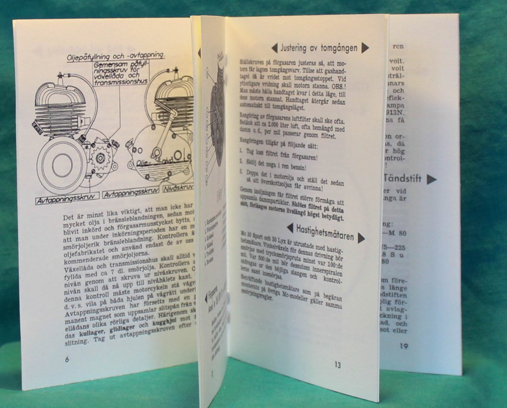Instruktionsbok för HUSQVARNA 120cc-motorcyklar modell 30 och 230.