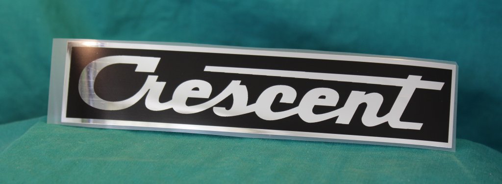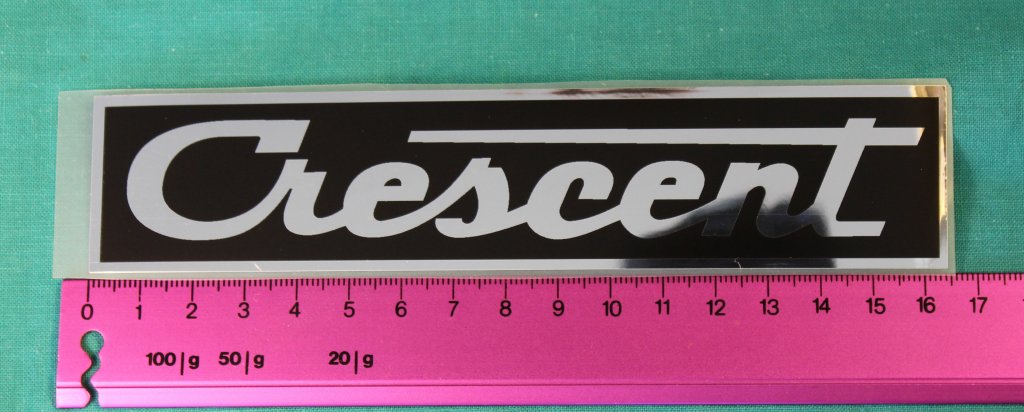 Klisterdekal "CRESCENT" i svart och krom, med måtten 165 x 35mm.