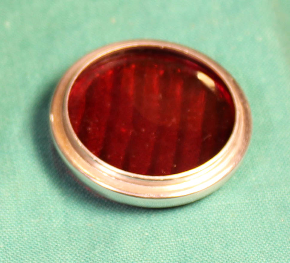 Glas som kan användas som ersättningsglas till vissa äldre baklyktor till motorcyklar, monterade på bland andra HUSQVARNAs 118cc/120cc-modeller.
