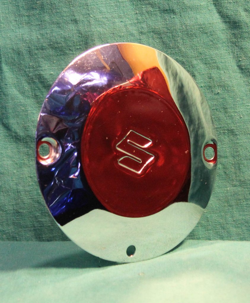 Kromat lock för öppningen i magnetkåpan över svänghjulet på SUZUKI K50.