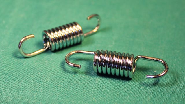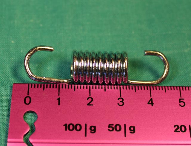 Fjädrarnas längd mellan krokarna är 45mm i vilande, diametern är 12mm och trådtjockleken är 2mm.