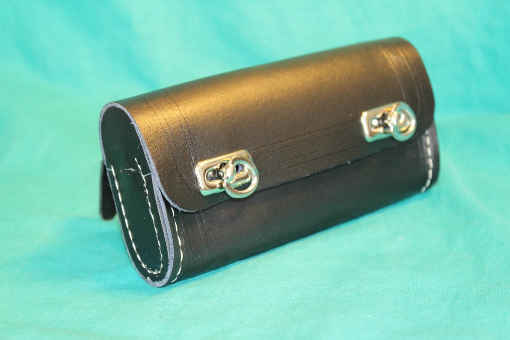 Svart verktygsväska att hänga bak på sadeln. Av läder.